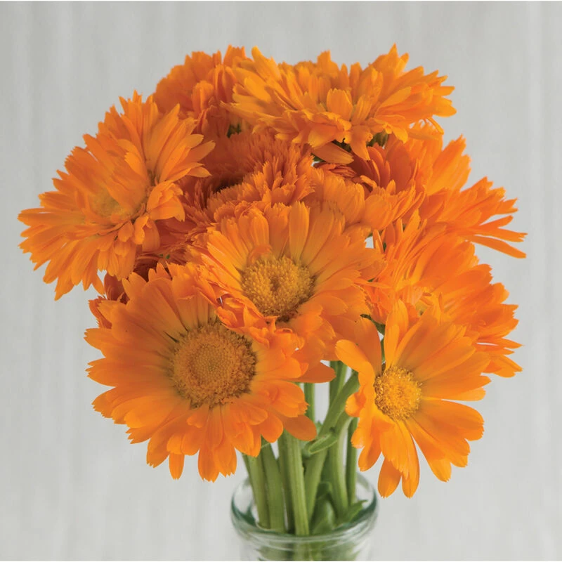 High resin content for medicinal use. 2–3 1/2″ blooms. Also known as pot marigold, common marigold, and Scotch marigold.