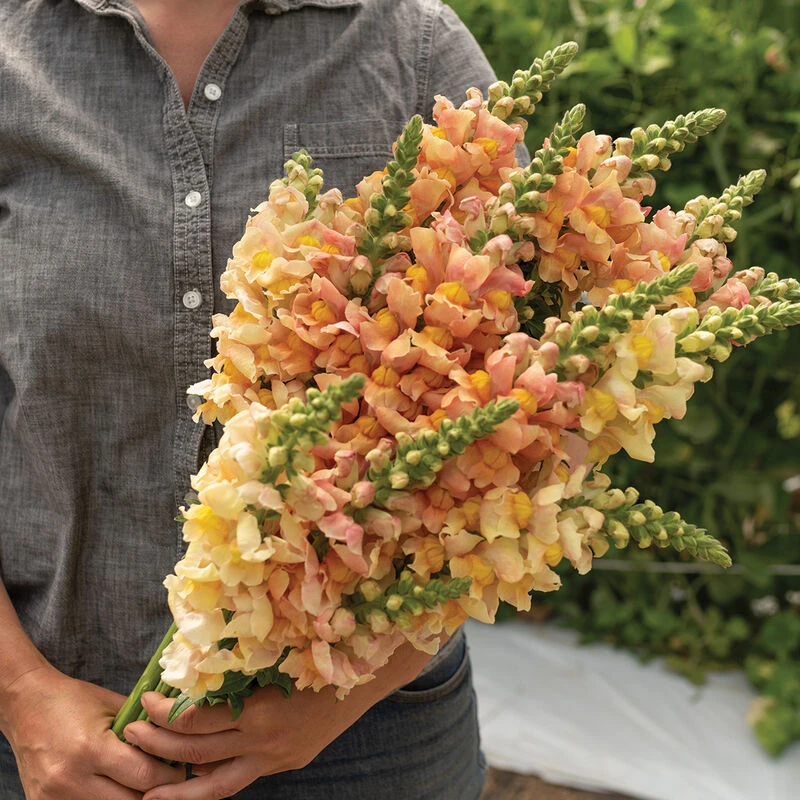 Exceptionally robust stems, high yields, and uniform growth in the field or greenhouse when grown under short days and low temperatures. Considered a Group 2 snapdragon.