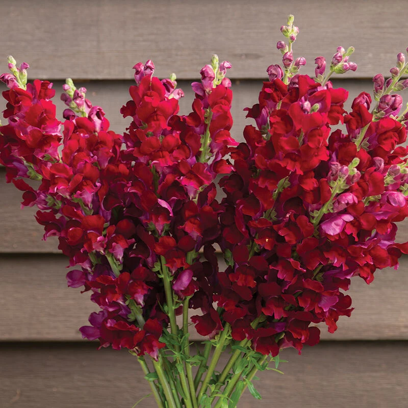 Dark and rich, burgundy-red color. Robust stems, high-quality blooms, and uniform growth in the field or greenhouse. Group 1–2 snapdragon bred for performance under short days and low temperatures. We’ve found the Costa Series to be more adaptable than most Group 2 & 1–2 snapdragons, in that the plants produce strong stems and high-quality blooms even under slightly warmer and longer days than would be ideal for a Group 2 & 1–2 series. Costa performs well in our spring and fall trials both in the field and tunnel, and overwintered (fall-planted inside an unheated tunnel for early spring flowering). Flower quality and stem quality are reduced under long days and high temperatures. Being a Group 1–2, Costa Velvet is a bit earlier to flower than the other Costa varieties in the Group 2 series.