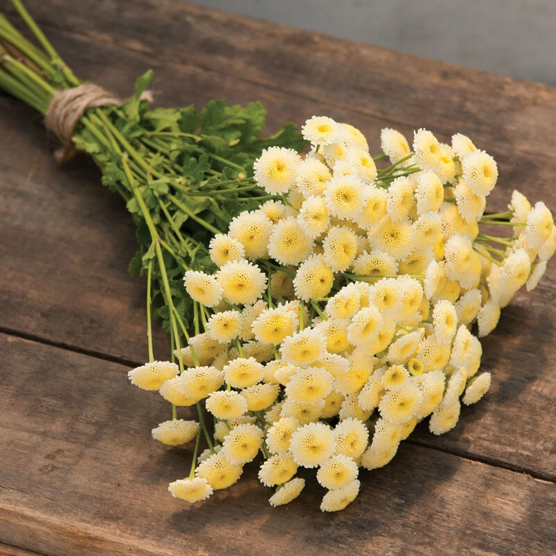 Upright, well-branched plants have long, strong stems that support abundant lime-green to pale yellow 1/2–1″ blooms. Easy to grow and harvest. Tender or short-lived perennial in Zones 5–9. Also known as feverfew. USDA Certified Organic.