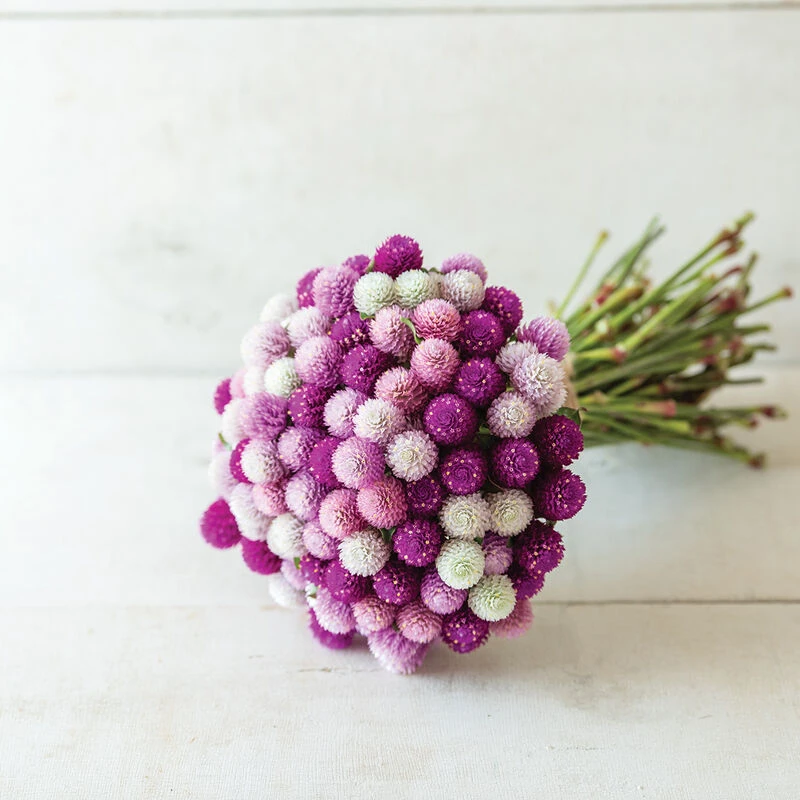 1 1/2″ blooms in shades of purple, pink, and white. We have found the QIS™ (Quality in Seed) Mix to have the widest color range in a mix, as well as good stem quality, length, and uniformity. Also known as globe amaranth and common globe amaranth.