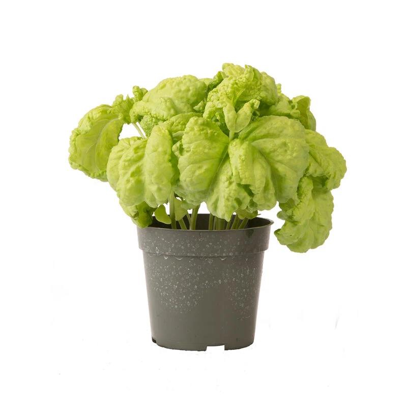 Very large 3-5″ long, ruffled and puckered bright-green leaves. Mild basil flavor with hints of anise. Upright habit. Has shown better-than-average downy mildew tolerance in our field trials. Ht. 12-16″.